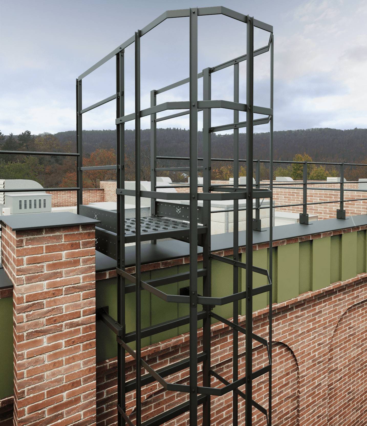 Вертикальная пожарная лестница П1-2 с площадкой 800х1500 L=7000мм